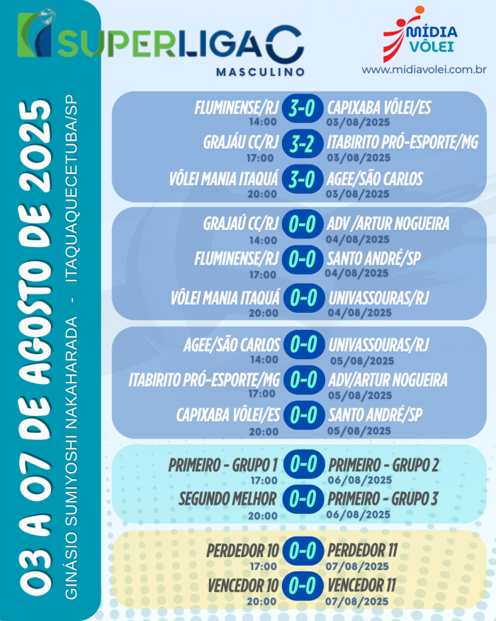 Sede Sudeste da Superliga C acontece de 3 a 7 de agosto, em Itaquaquecetuba, na grande São Paulo